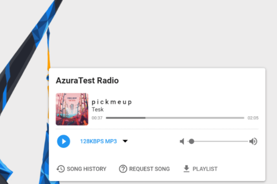 This public page displays information about the station, includes a playable web radio player, and allows listeners to browse playlists, request songs, and view station details like current listeners. It's designed to be customized, so the station owner can alter its appearance and even add custom JavaScript to integrate it into their own website.